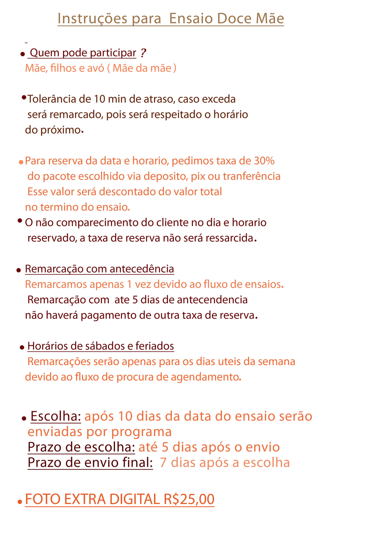 Este ano, as vendas para os ensaios de Dia das Mães serão realizadas em lotes, com um acréscimo de 10% a cada virada de lote.